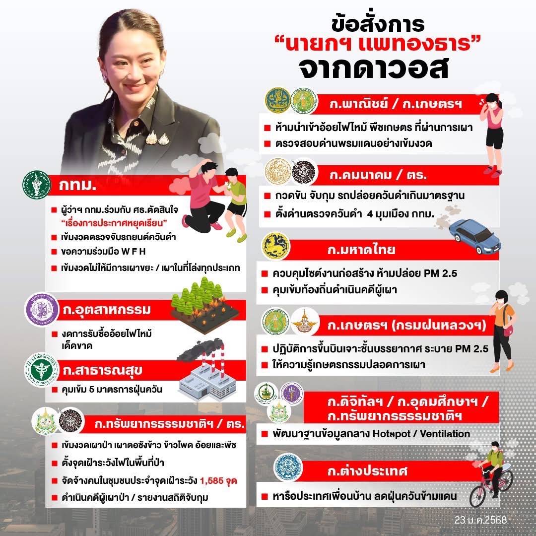นางสาวแพทองธาร ชินวัตร นายกรัฐมนตรี มีข้อสั่งการโดยตรงมาจากเมืองดาวอส สมาพันธรัฐสวิส ให้ส่วนราชการทุ
