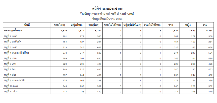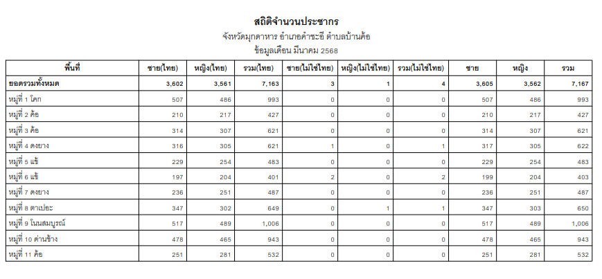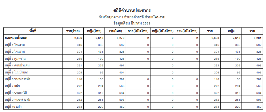 ข้อมูล ณ มีนาคม 2568จาก https://stat.bora.dopa.go.th/